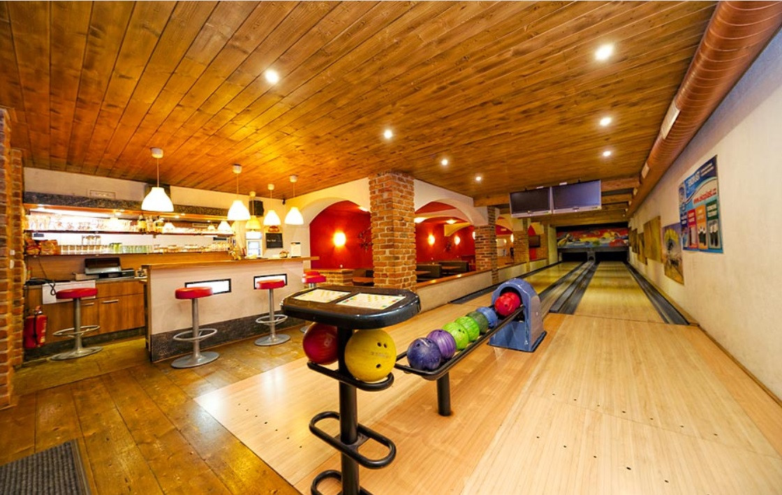 V suterénu najdete 2 bowlingové dráhy, bar a nabídku drobného občerstvení - na objednávku.